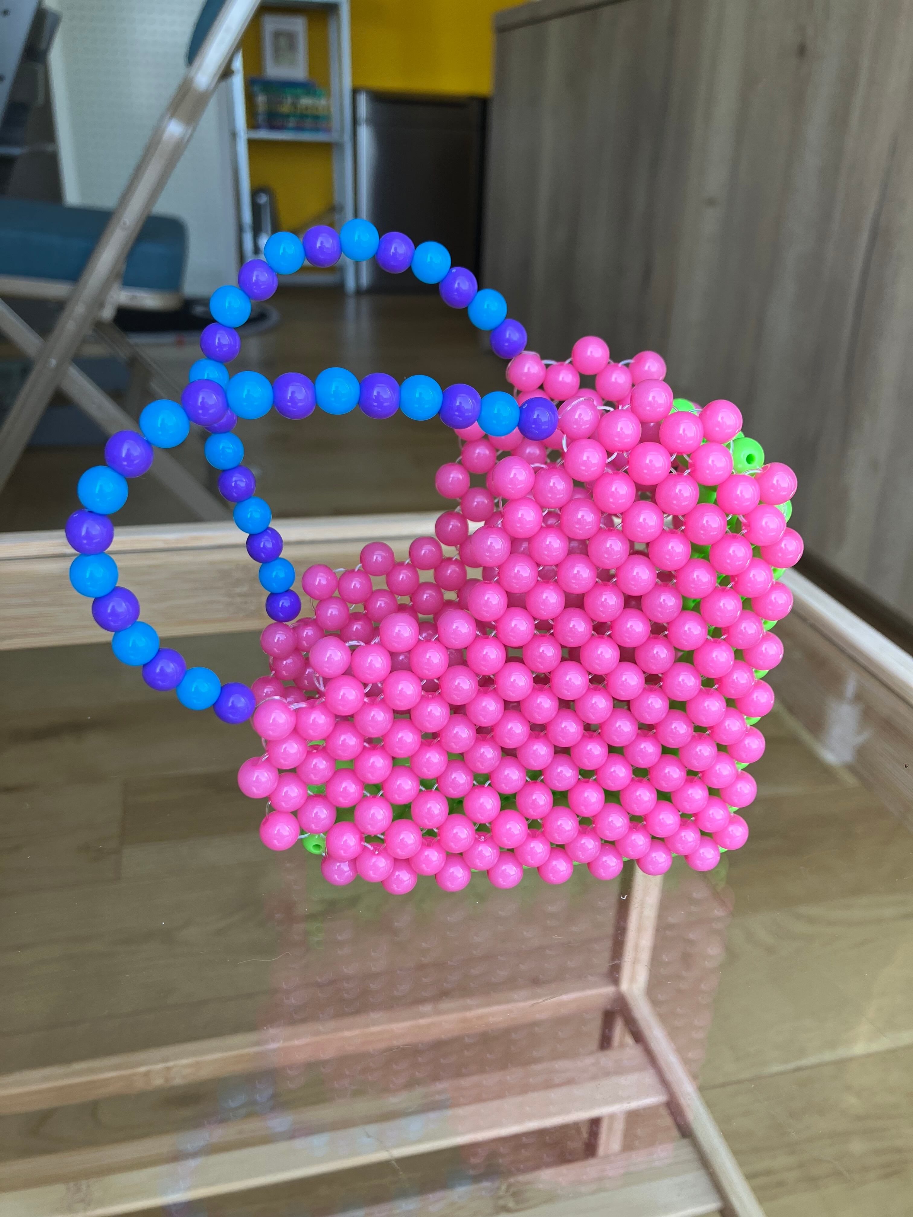 【ビーズのハート型ミニバッグ】 ピンク×きみどり