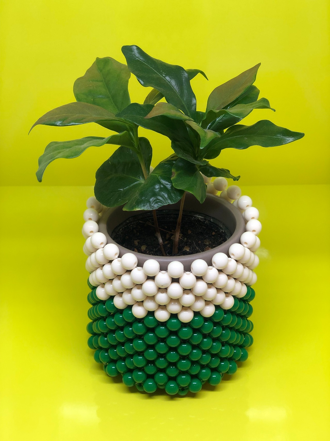 カラフルビーズの小物入れ【Tubutubu】 白×緑