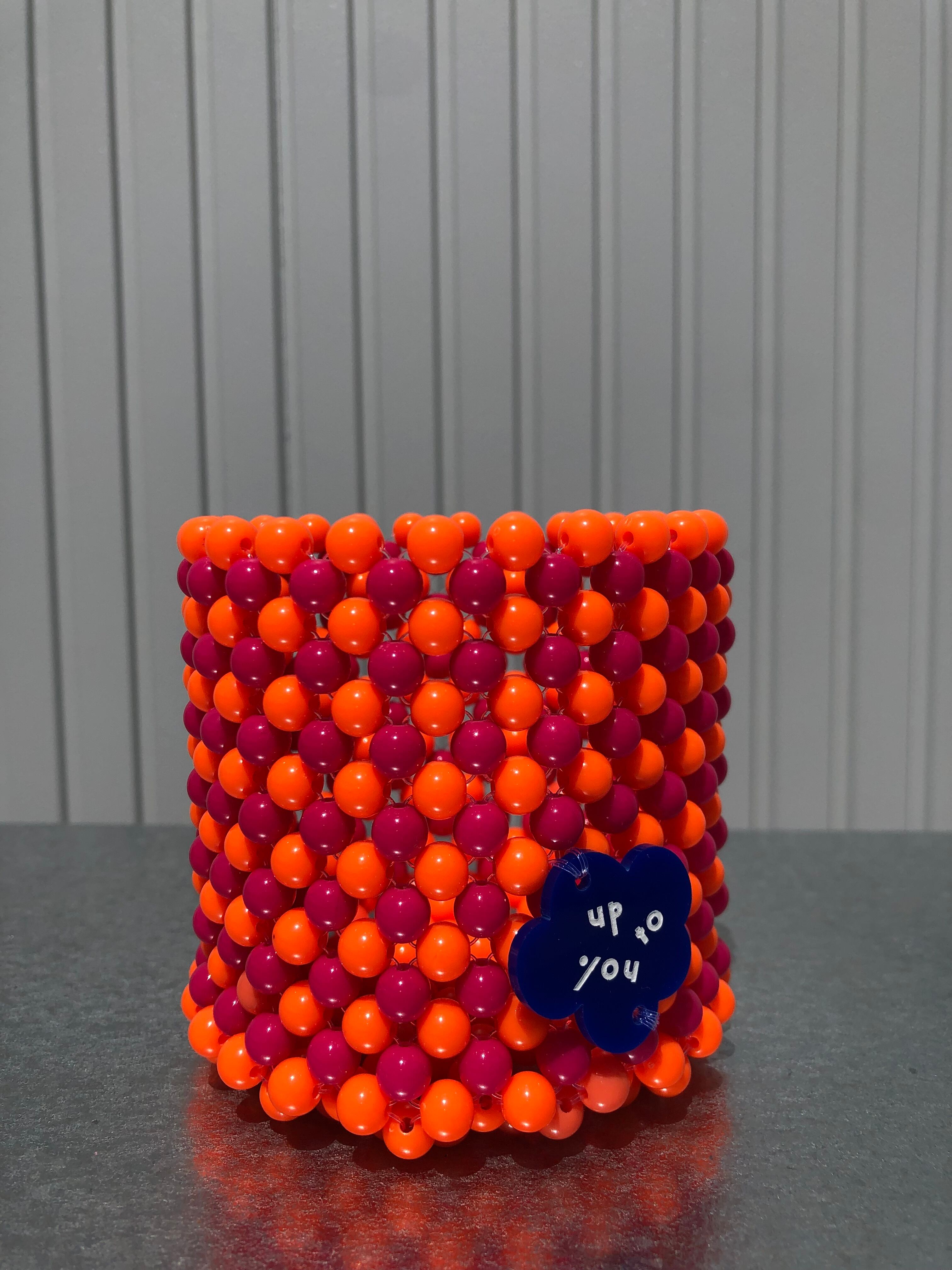 カラフルビーズの小物入れ【Tubutubu】オレンジ×ピンク