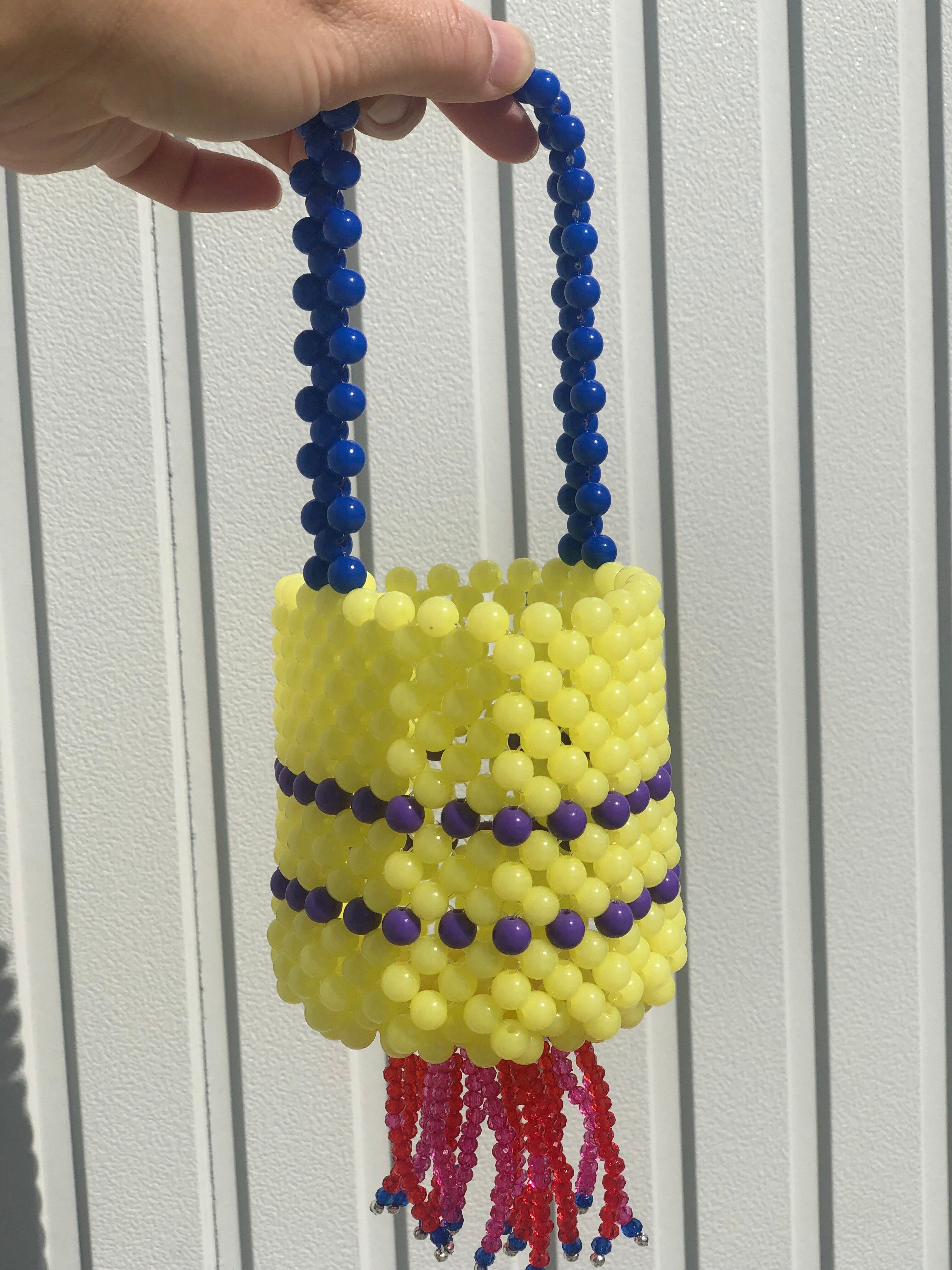 カラフルビーズの小物入れ【Kurage】赤